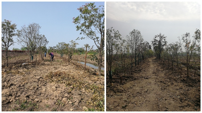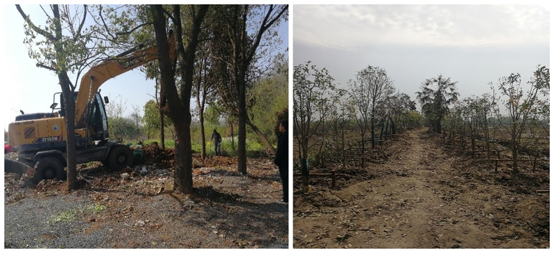 7、4月1日,绿化队伍进场平整场地,准备树木移植,4月14日完成所有苗木移植工作;