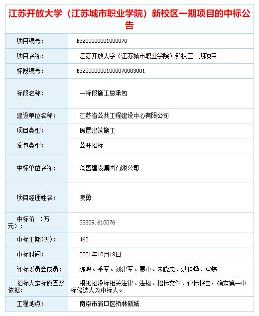 新校区一期项目一标段施工总承包已招标完成