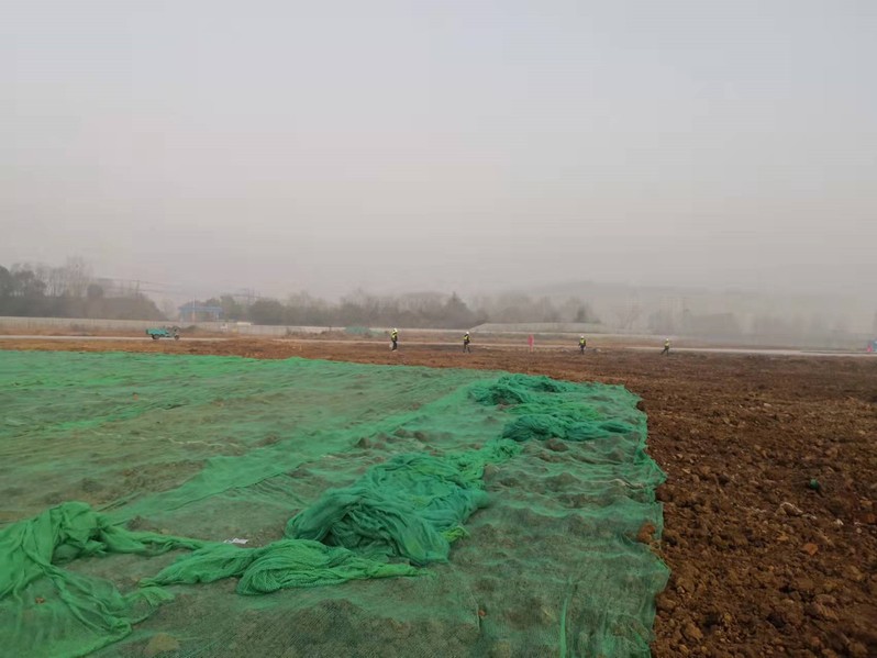 图四 新校区一期一标段场地裸露土临时绿网覆盖