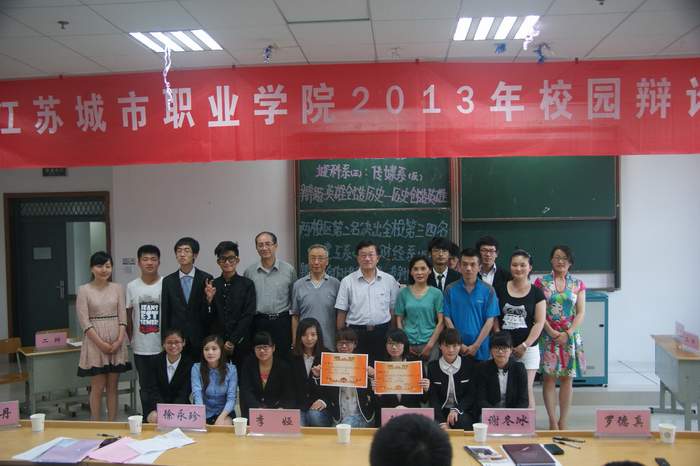 5月22日下午2点30分,学工处主办的江苏城市职业学院2013年校园辩论赛决赛在应天校区教学楼203如期举行,来自两个校区的四个参赛队分别就“竞争比合作重要——合作比竞争重要”、“英雄创造历史——历史创造英雄”辩题进行了唇枪舌战,最后决出了本届辩论赛的前三甲:传媒系、城科系、财经系,同时评出城科系张权、建工系曹怡婷两位同学成为“最佳辩手”。