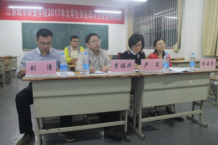 4月24日晚上,我校2017年大学生创业园入园项目答辩会在定淮门东校区教学楼108教室举行,南京创业者培训服务中心的资深讲师严莉和李福兴两位老师和校学生工作处处长季海菊、副处长刘涛担任评审委员会成员。