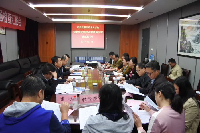 10月18日下午,江苏省教育厅大学生创新创业示范基地评审专家组,到我校定淮门东校区进行创新创业基地建设工作实地考察,专家组由南京邮电大学副校长王宗荣、南京工业职业技术学院副院长霍雄飞、南京航空航天大学学生处副处长许爱华、南京邮电大学学生处副处长范结兵组成。我校党委副书记、副校长金丽霞,学工处(就业指导中心)、科技处、教务处、学科处等职能部门、商学院和传媒与设计学院的负责人陪同考察。