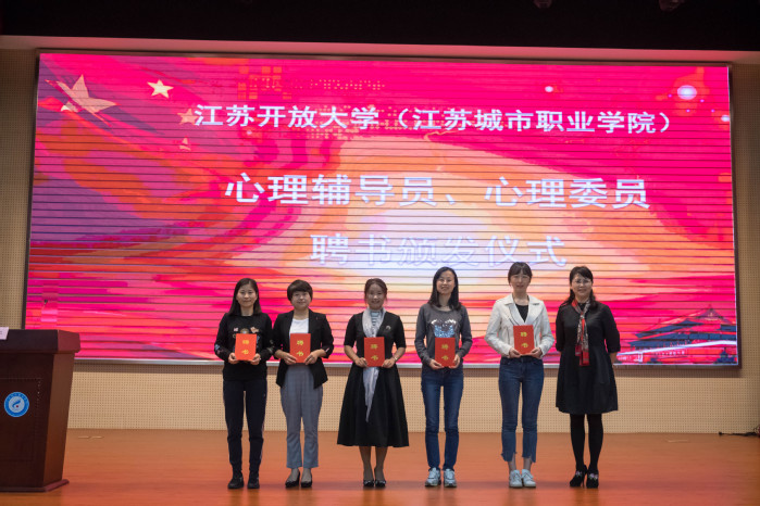 校党委副书记、副校长金丽霞为校心理辅导员颁发聘书