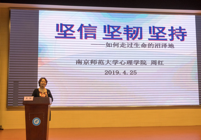 本次讲座特邀江苏省大学生心理健康教育专家指导委员会副秘书长、江苏省社会心理学会心理咨询专业委员会副主任委员、国家注册心理咨询师、南京师范大学心理学院党委书记周红担任主讲嘉宾。周红以“坚信、坚韧、坚持”为关键词,与大家分享如何走过生命的沼泽地。她援引自身经历和咨询实例,直击同学们遇到的困惑:“与相悦交往,相恼交往?”“爱我所择,择我所爱?”“醉心于小说中的浪漫,纠结于现实中的压力”“够不着高处,不满足低处,心理装着苦处”等,引导同学们积极思考人生价值与意义,正确看待人际交往、专业发展与个人成长、爱情、择业,勉励大家坚定信心,接纳自我,忍耐挫折,及时修正错误,在积累中成长,做有家国情怀之人。讲座不仅有大量丰富案例,更是妙语连珠,通俗易懂,鼓舞人心,师生们普遍认为这次讲座不仅传播了心理健康教育工作的理念、方法与艺术,而且引导同学们解决了价值观层面的问题。