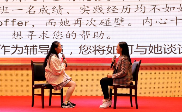 谈心谈话环节主要考察辅导员对相关政策、学生特征、学生成长成才规律的了解把握及对学生的教育引导能力。面对学生在学习、生活,就业创业等方面遇到的诸多问题,辅导员们或动之以情、晓之以理;或条分缕析、循循善诱;或温情安抚,问症把脉。机智的处理和精彩的表现,充分展现了辅导员的专业功力。