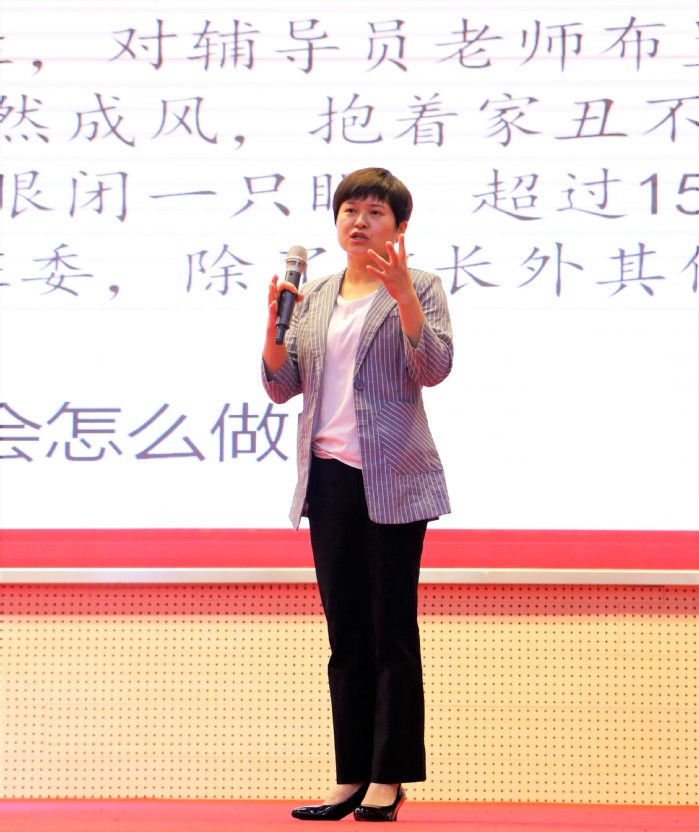 理论宣讲环节主要考察辅导员对马克思主义理论、习近平新时代中国特色社会主义思想、党的十九大精神等的学习宣传阐释能力,以及对大学生开展理想信念教育、社会主义核心价值观教育过程中的理论宣传阐释能力,注重考察理论宣讲的政治性、思想性、理论性、政策性和导向性。辅导员老师们或从国家发展历史,或从生活小事入手,深入浅出得阐释了中国梦、青年责任、制度自信、人类命运共同体等主题,展示了辅导员作为学生思想的引导者角色功能。