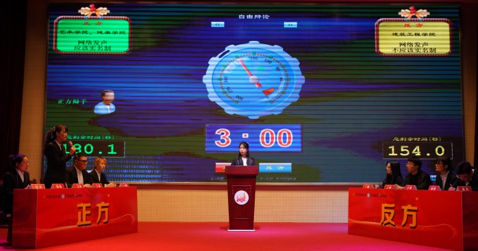本届辩论赛校级比赛共有6支队伍参加,全程分初赛、决赛两个阶段,实行淘汰赛制,共8场比赛。决赛阶段,建筑工程学院与艺术(健康)学院、商学院与信息工程学院作为初赛晋级队伍,分别就“网络发声是否应该实名制”、“做好垃圾分类,意识引领和设施配套哪个更重要?”两个辩题进行了激烈争辩。赛场上,正反双方展开了激烈的唇枪舌剑,观众席上不时爆发出热烈的掌声。评委谢冬冰老师对比赛进行了专业的点评,对如何立论、如何解析辩题等提出了具有建设性的指导建议。