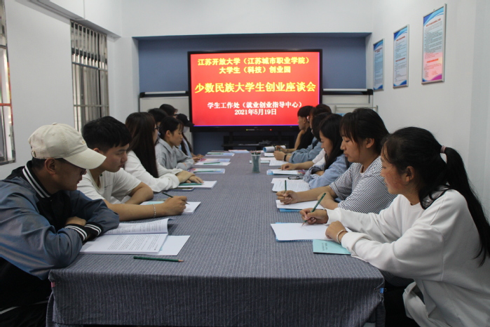 为进一步了解少数民族学生创业意向和加大双创理论的宣传力度,5月19日下午,我校在定淮门东校区大学生(科技)创业园就业创业指导站举办专题座谈会。商学院的14名少数民族同学参加了座谈交流。会场由学生工作处(就业创业指导中心)宋智华老师主持。