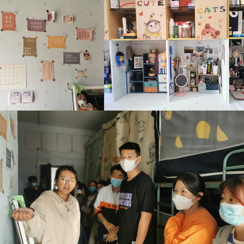 活动开始后,各学院新生宿舍长代表们在指定地点集合,排好整齐的队伍,迫不及待地准备开启“样板宿舍”参观之旅。挂牌“样板宿舍”的学长、学姐们也早已准备好,等待萌新们的到来。挂牌“样板宿舍”干净整洁、美观舒适、特色鲜明,让新生宿舍长代表们赞叹不已。“样板宿舍”的学长、学姐们从宿舍安全、宿舍卫生、宿舍文化、宿舍成员学习和活动等方面分享了宿舍建设的经验,他们认为宿舍安全和卫生是宿舍建设的基础,宿舍文化建设更能彰显宿舍特色。新生宿舍长代表们表示,要结合宿舍的布局、宿舍成员的专业特色,学习借鉴“样板宿舍”的建设经验,积极布置自己的宿舍,丰富宿舍文化,营造温馨整洁的宿舍环境。