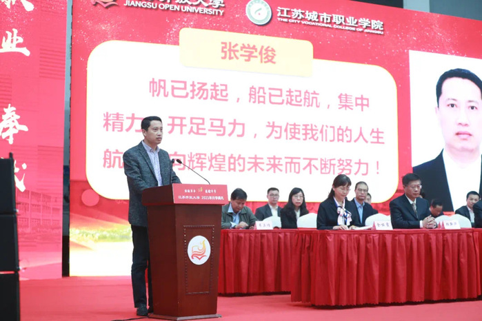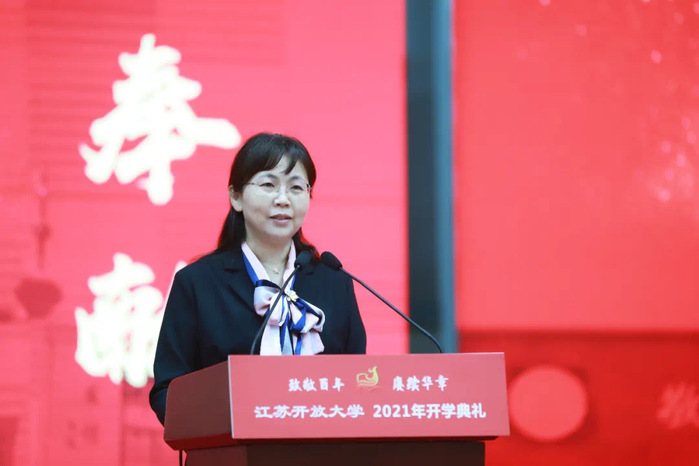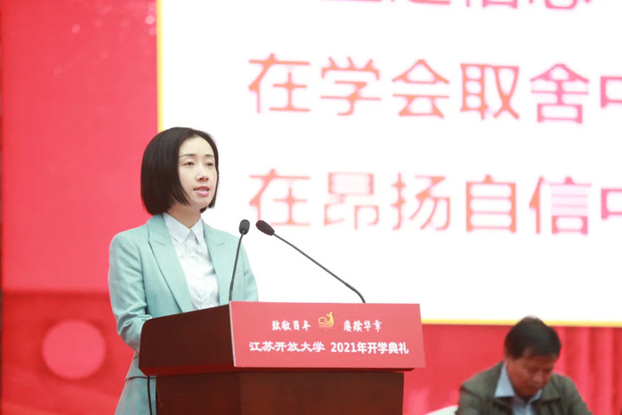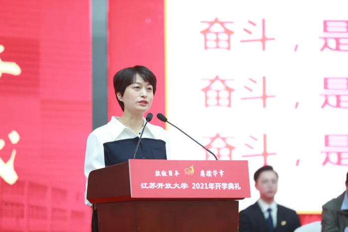典礼最后,校党委副书记、副校长金丽霞勉励全体新同学站在新起跑线上,深刻领悟校训,在江苏开放大学实现梦想。