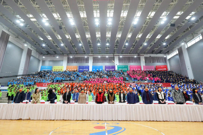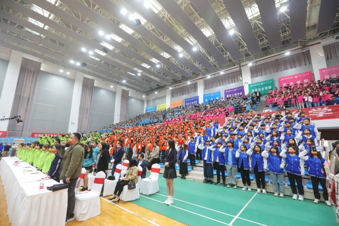 国歌庄严肃穆、国旗高高飘扬,在全体师生深情注视中,2021级新生开学典礼正式拉开序幕。