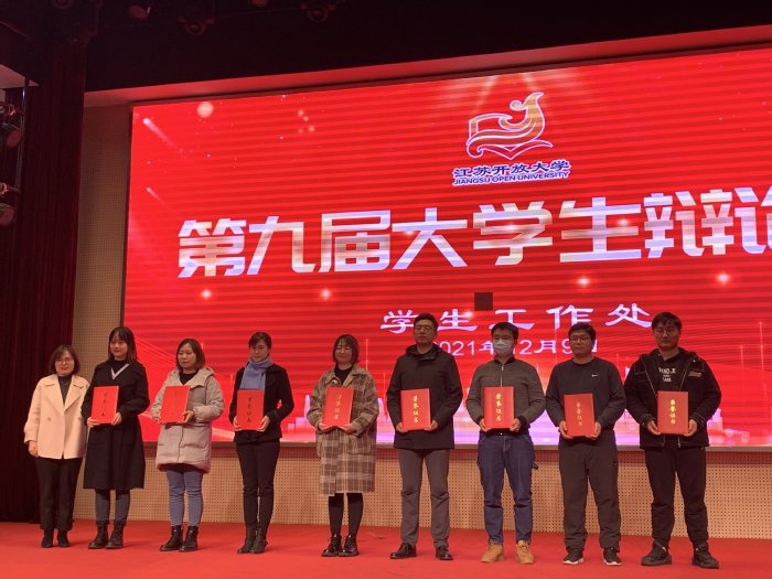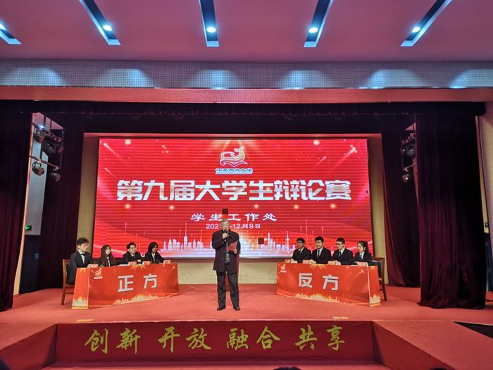 为深入贯彻党的十九届六中全会精神,引导青年践行和弘扬社会主义核心价值观,丰富校园人文精神内涵,优化校风学风,提升学生综合素质,12月9日晚,我校第九届辩论赛决赛在应天校区体艺馆406室举行,江苏省终身教育学分银行管理中心主任张璇、图书馆馆长谢冬冰、学生工作处处长刘涛、校党委组织部统战部原部长卢福毅、校宣传部副部长刘慧英担任评委,近200名学生观看比赛。