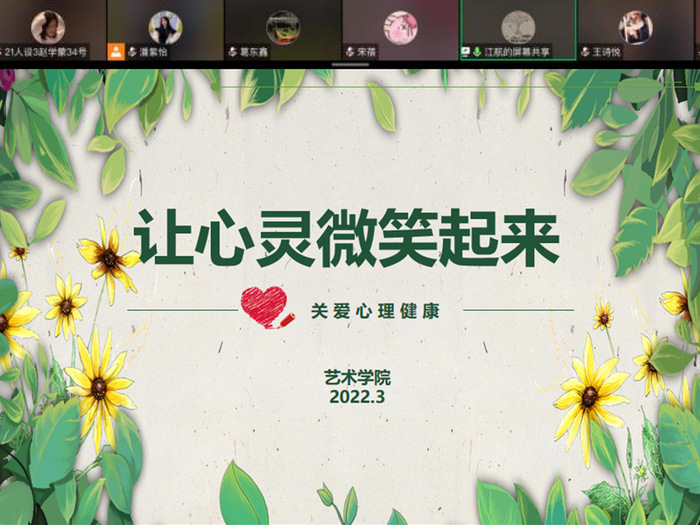 各学院也纷纷开展“向阳携行共创未来”主题活动,线上主题班会上各位辅导员老师向大家普及心理健康的重要性和我校心理咨询服务方式,通过分享心理健康知识、开展心理素质拓展游戏、观看心理影片,组织心理书籍分享会等方式,加强生命教育,提高同学们心理素质。鼓励同学们疫情期间也要多运动,多社交,以实际行动引导他们在环境中寻求新资源、建立新关系、发展新技能,提升适应能力和应变能力,为助力学生全面发展打下坚实的基础。
