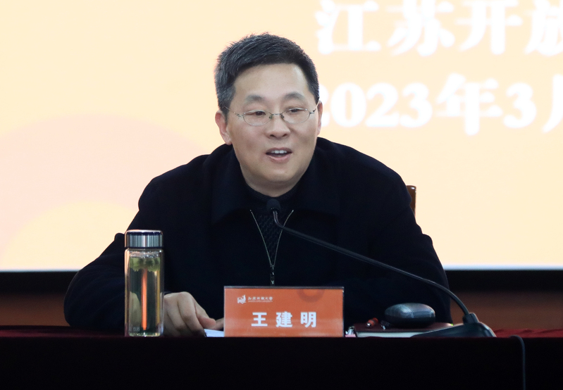 王建明首先代表学校党委和行政向学工战线的老师们表示衷心感谢,并以《深入贯彻党的二十大精神 奋力开创学生工作新局面》为题作报告。他充分肯定了全省办学系统在2022年顶住了常态化疫情防控下的学生管理压力,围绕立德树人根本任务,聚焦学校中心工作,奋发努力,圆满完成了学生工作各项目标任务,为学校事业高质量内涵式发展作出贡献,全面分析当前面临的发展形势,希望大家紧紧围绕立德树人根本任务,以学习贯彻党的二十大精神为统揽,发扬斗争精神,切实推动我校学生工作高质量发展。就贯彻党的二十大精神,奋力开创学生工作新局面,他提出了四个要求:一是提高政治站位,持续推进学习宣传贯彻党的二十大精神;二是立足服务导向,完善学生工作体系,提升学生管理与服务水平;三是聚焦铸魂育人,打造新时代高质量学工队伍;四是牢牢守住安全底线,加快建设高质量平安校园工作;他号召全体同志们要以党的二十大精神为指引,锚定高水平开放大学建设奋斗目标,干字当头、敢为善为,以“拼”的精神、“实”的干劲、“敢”的担当干事创业。全省办学系统要步调一致、踔厉奋发、勇毅前行,以敢为、敢闯、敢干、敢首创的精神风貌在全面建设社会主义现代化国家、全面推进中华民族伟大复兴的新征程中和谱写“强富美高”新江苏现代化建设新篇章中展现江苏开放大学的担当,谱写中国式现代化江苏开大新实践,为建设全民终身学习的学习型社会、学习型大国作出新的更大贡献!