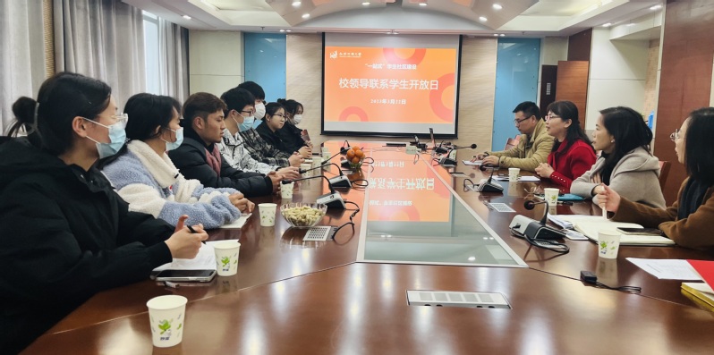 为进一步加强“一站式”学生社区建设,畅通学校领导与广大同学的联系沟通渠道,广泛听取同学们的意见和建议,3月22日中午,“校领导联系学生开放日”学生座谈会活动在我校应天校区八楼会议室举行,校党委副书记、副校长金丽霞、学工处处长刘涛、团委书记包慧君、学工处副处长吴红梅与各学院学生代表参加了此次座谈会。