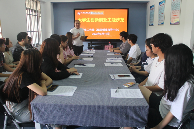 为推动项目实践,助力创客圆梦,5月19日上午,我校学生工作处在定淮门东校区大学生就业创业指导站举办大学生“双创”主题沙龙。活动特邀南京市鼓楼区新工·五一智慧科技产业园运营总监,鼓楼区优家乐房产信息咨询部总经理朱磊磊作现场交流和分享。来自商学院和设计学院的18名同学参加活动。会场由就业创业指导中心宋智华老师主持。
