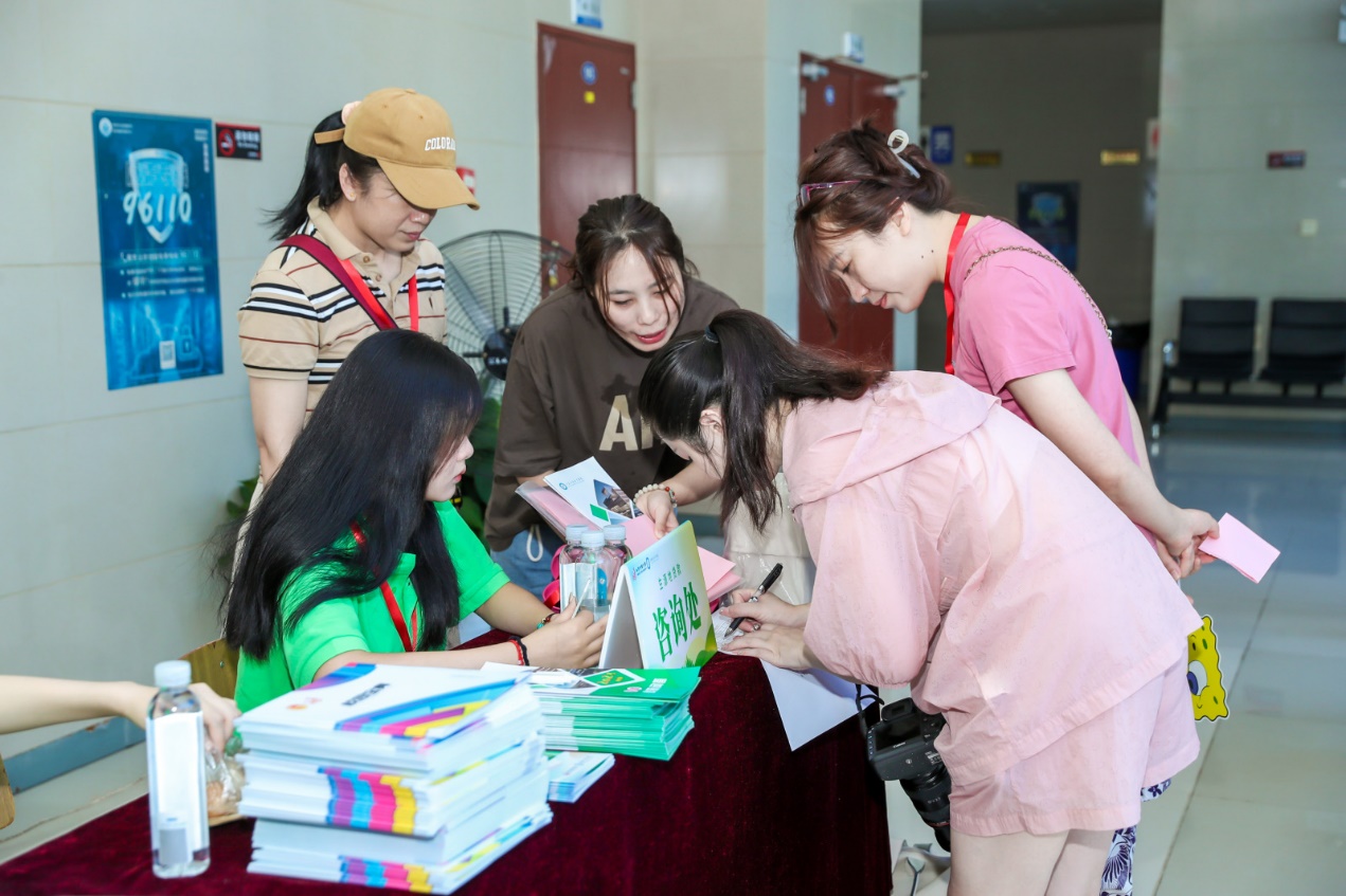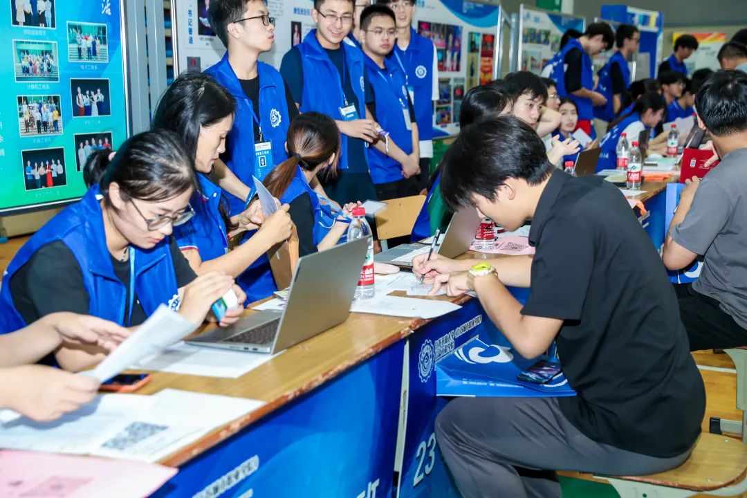 新生们在志愿者引导下前往各学院接待点,工作人员为新生办理身份确认、缴费确认、材料发放等报到手续,耐心解答新生疑问。