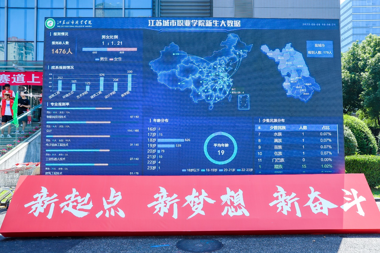 今年,学校创新迎新方式,力求营造浓厚的入学氛围,为新学年谱写精彩序章。当新生们迎着朝阳踏入校园,校门口的数据大屏上实时显示学生信息并打出欢迎语,各学院报到人数、性别比例、年龄分布、新生地域分布等信息也在大屏上滚动显示。