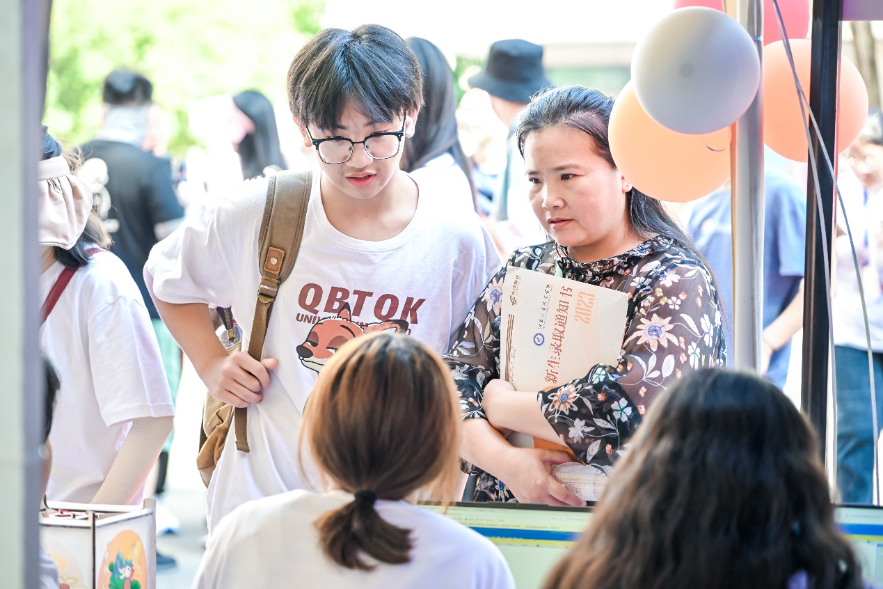报到期间,校党委书记荆晅、校长丁荣余等全体校领导来到迎新现场,亲切慰问现场的工作人员与志愿者,在各学院迎新点详细了解迎新工作开展情况,与新生及家长们亲切交谈,对新同学表示诚挚的欢迎和祝贺。