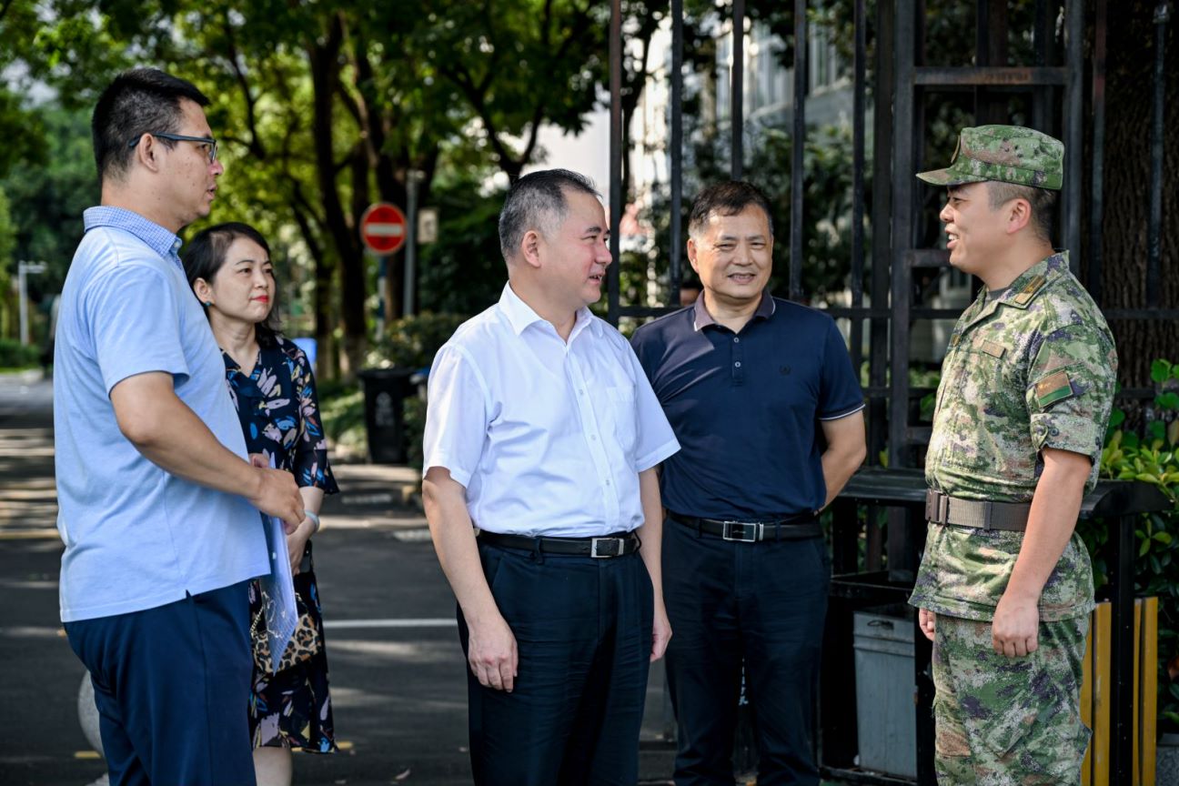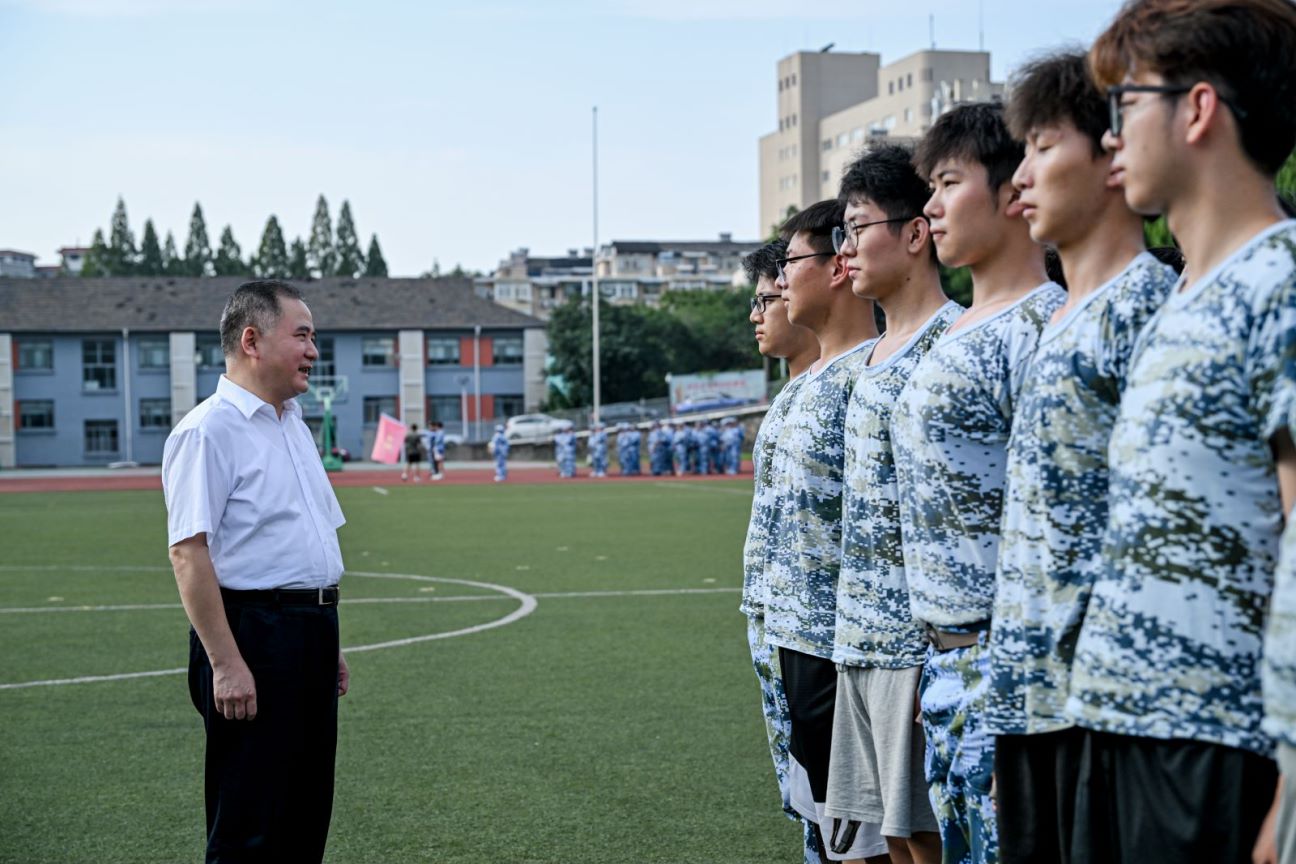 迷彩戎装,英姿飒爽;暖心慰问,关怀送情。军训期间,校党委书记荆晅,校党委副书记、校长丁荣余,校党委副书记牛玉韬等校领导来到两校区军训现场,检查指导2023级新生军训工作,亲切慰问承训教官和全体师生。学生工作处、武装部、团委及各学院有关人员陪同检查。