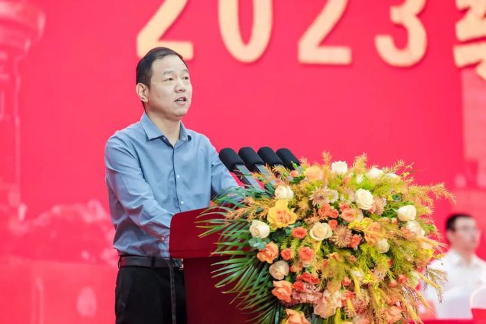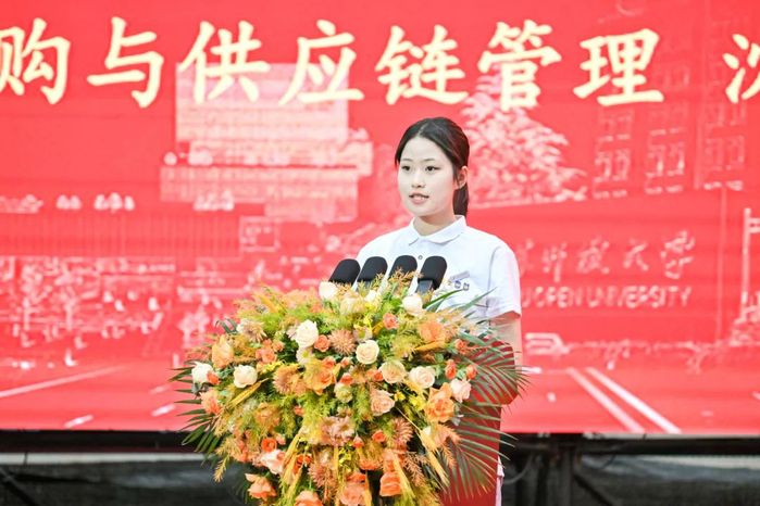 砥砺奋进,风雨兼程。商学院2023级高职新生代表沈玉娇同学发言。她表示,通往成功的路上总是荆棘遍布,但“既然选择远方,便只顾风雨兼程”,她邀请全体同学一同出发,携手并进,共赴明日之约:拼搏奋斗人生,拥有无悔青春!