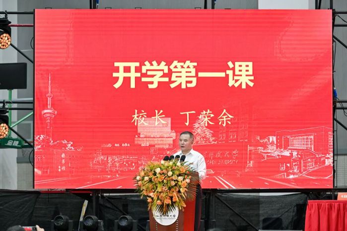 校党委副书记、校长丁荣余为新生讲授开学第一课