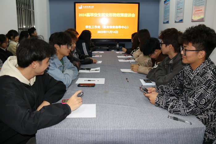 为增强形势认知,把握就业机遇,11月14日晚,我校学生工作处在定淮门东校区大学生就业创业指导站召开2024届毕业生就业形势政策座谈会。来自各学院的23名学生代表参加座谈交流。会议由就业创业指导中心宋智华老师主持。