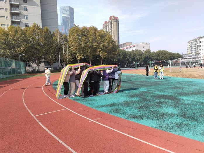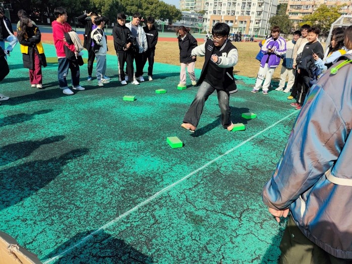 “趣味运动会”分为三个竞赛项目,分别为六人七足、摸石过河、履带前行。“六人七足”十分考验默契,同学们积极沟通,调整位置,在一声声整齐的口号中取得比赛胜利;“摸石过河”极具娱乐性,赛场上洋溢着欢乐笑容,将运动会气氛推向高潮;“履带前行”环节,同学们在相互搀扶中走完赛道,展现了良好的精神风貌,收获了珍贵友谊。同学们在运动中相识,在游戏中磨合,在比赛中成长。