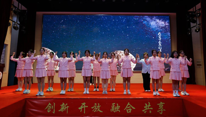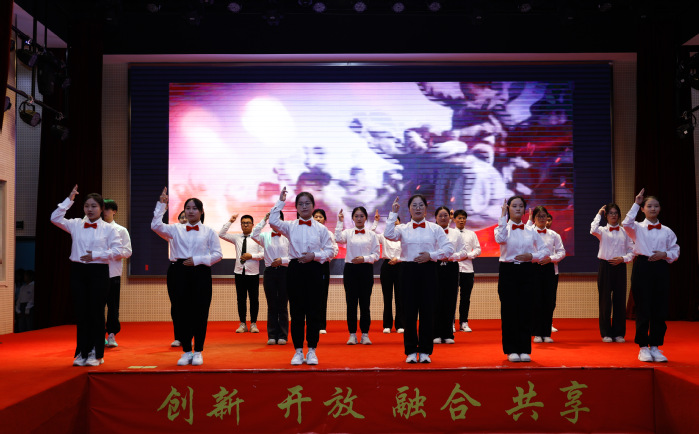 商学院参演团队的《送你一朵小红花》,动作整齐划一、眼神坚定,送你一朵小红花,希望大家能够拥有一次次战胜困难的勇气,能够积极面对成长路上的荆棘。