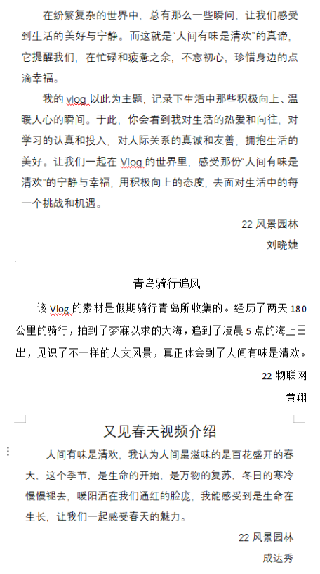 世界不止一种声音,青春的每一帧都不同。同学们在一支支Vlog中,探索瞬间美好,感悟青春气息;践行生活热爱,享受点滴快乐;传递蓬勃激情,展示自信阳光成长。大家纷纷表示,在充满阳光与生机的四季轮回中更加勇敢地热爱自我,热爱生活!