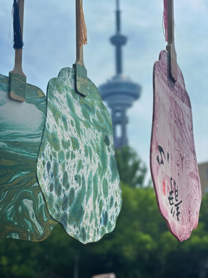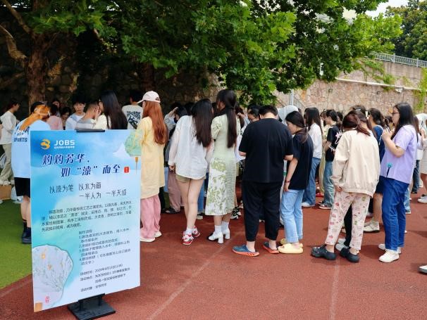 以漆为笔,以水为画,一半人为,一半天成。漆扇是中国传统工艺品之一,拥有独特的艺术魅力,蕴含着丰富的文化底蕴和历史价值。为弘扬和传承中华优秀传统文化,丰富校园文化生活,同时培养学生的动手能力和艺术审美,增加同学们对非遗漆扇的了解,建立文化认同和民族自豪感,2024年6月13日12:00,学工处联合商学院在东校区操场“智慧树”下举办了一场别开生面的“灼灼芳华 如‘漆’而至”非遗漆扇制作活动,活动吸引全校200余名师生参加。