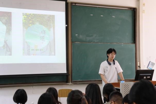 活动负责人2022级电子商务3班张羽锟向同学们介绍非遗漆扇的历史背景和文化内涵。漆扇历史悠久,工艺精湛,因其古老而优雅的文化魅力和独特的艺术价值,深受人们的喜爱。通过视频和图片的展示,他向同学们详细讲解漆扇的制作步骤和注意事项。同学们对漆扇有了更加细致的了解后,愈加期待能够亲手制作出一把独一无二的漆扇。随后,在活动负责人的指引下,同学们移步至操场“智慧树”下,开始漆扇制作。