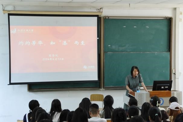 活动伊始,商学院党总支副书记、副院长丁晓华致辞。她向同学们强调传承和发扬中华优秀传统文化的重要性,鼓励同学们积极参与此次活动,通过亲手制作漆扇,充分发挥创新思维,设计出独具特色、图案精美的作品,展示艺术才华,沉浸式感受传统文化的魅力。