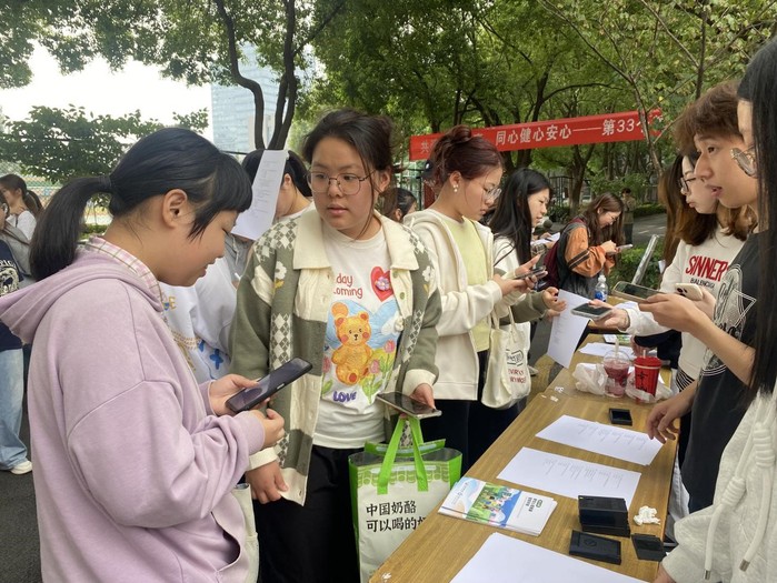 为进一步提高我校师生对心理健康的关注,普及精神卫生知识,提升学生精神卫生核心知识知晓率,并帮助他们在日常学习生活中学会关爱自我,我校心理协会于2024年10月10日在应天校区和东校区食堂前开展了以“共建共治共享,同心健心安心”为主题的心理健康知识竞答活动。活动吸引了各学院众多学生的热情参与。