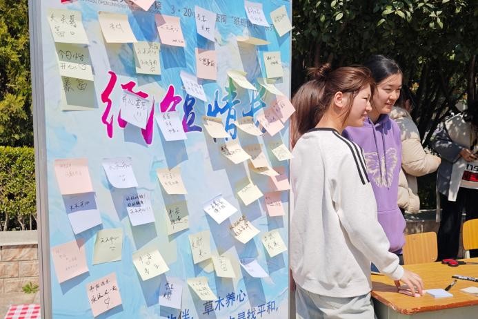 延续去年广受欢迎的互动形式,“未来信箱”与“心愿便利贴”再次成为同学们表达情感的重要窗口。在“未来信箱”前,大家提笔写下对半年后自己的期许与目标,将当下的困惑、希冀封存于信笺,等待时光的答案;“心愿便利贴”墙上则贴满了对亲友的祝福、对生活的感恩或对陌生人的善意鼓励。一笔一画间,同学们在快节奏的学习生活中按下暂停键,倾听内心声音,感受情感流动的治愈力量。