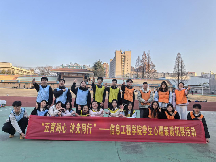 体魄强健方能心境开朗。一系列充满活力的体育活动有效促进了学生的身心协调发展。校级品牌活动“彩虹跑”以其绚丽的色彩和运动的激情,成为释放压力、感受快乐的盛大嘉年华。5·25心理嘉年华深度融合趣味体能项目,建筑工程学院“拳击解压器”提供安全宣泄通道,心理协会“翻滚保龄球”“指压板跳绳”等创意活动在寓教于乐中提升抗压能力;校级心理户外拓展通过专业情境训练强化团队协作,信息工程学院五育润心 沐光同行主题拓展以多元项目助力学生心理健康全面提升;环境生态学院心向暖阳宿舍素质拓展则通过团队协作深化室友情感联结。