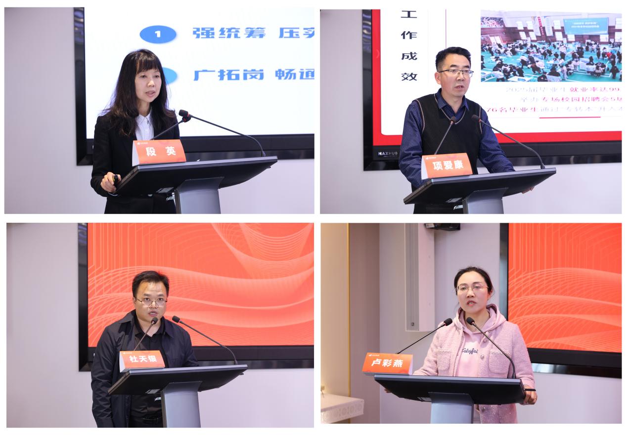 在交流发言环节,各办学单位紧扣2026届就业工作,围绕基本情况、关键时间节点、具体任务目标等方面依次发言。客观分析了2025届与2026届毕业生就业工作的差异特点,以及面临的共性问题和个性难题,又聚焦4月至8月攻坚阶段,明确了任务安排、细化了目标指标与推进举措。大家谈问题不回避、谈措施有抓手、谈目标有底气,充分体现了各办学单位对就业工作的高度重视与责任担当,为下一步协同推进就业工作凝聚了共识、汇聚了力量。