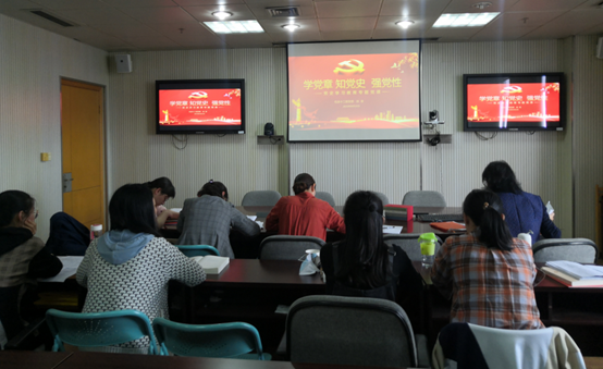 随后,围绕党史学习,支部书记徐亚以《学党章 知党史 强党性》为题上了专题党课。她从党史学习与党章学习的关系、党章的地位作用、党章的历史沿革和新时代如何学好党章党史四个方面进行阐述,尤其就新民主主义时期,从中共一大有纲领无党章到中共七大,历经南昌起义、秋收起义、古田会议、长征、遵义会议后,中国共产党对于革命道路的认识和选择逐步步入正确的轨道,七大修订的党章成为了民主革命时期最好的、最完备的一部党章,强调了党章是党史缩影,回顾党章的历次修改,可以清楚地认识到中国共产党在思想、理论和政治路线等方面与时俱进地历史过程和发展轨迹;也可以清楚的看到我们党是一个善于自我革命,敢于承认错误,勇于自我纠错的党。进一步要求党员同志们要做到习近平总书记提出的学史明理、学史增信、学史崇德、学史力行,要经常对照党章党规党纪,检视自己的理想信念和思想言行,不断掸去思想上的灰尘,永葆政治本色。