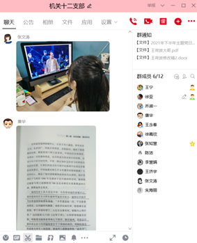习近平总书记在中共中央政治局第三十一次集体学习时强调:用好红色资源,赓续红色血脉。红色血脉是中国共产党政治本色的集中体现,是新时代中国共产党人的精神力量源泉。南京是一座有着光荣革命传统的英雄城市,蕴藏着丰富的红色资源。机关党总支部第十二党支部结合南京本地红色资源,以“用好红色资源,赓续红色血脉”为主题,深入学习党史和党在江苏的奋斗史,学习革命先辈的英勇事迹,创新形式拍摄《一堂党课》,讲述“品重柱石”的共产党员王荷波的故事。前期创作阶段,支部全体党员利用轮休时间通过浏览网站、观看话剧和电影等方式围绕王荷波事迹进行了一场“云寻访”,9月7日,在支部QQ群上,同志们一起分享交流了此次“云寻访”的成果。
