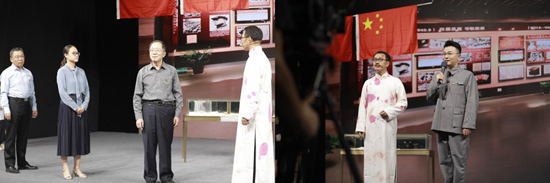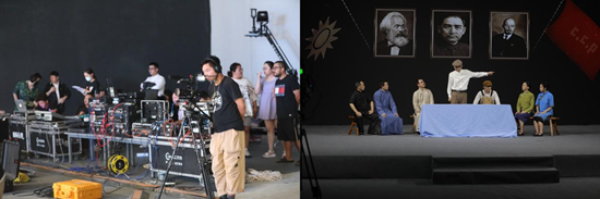 三天的排演录制过程,党员群众更是学在一起,干在一起。台上的演员用情感充沛的话剧语言、丰富的肢体语言,在舞台上讲述着革命故事;台下的工作人员认真守好各个机位和技术岗位,听从导演调度指挥、密切配合,在暑气未消甚至十分闷热的影棚里,从早到晚,一干一天。遇到技术性故障或出现特殊状况时,大家齐心协力想办法,积极商讨克服困难。
