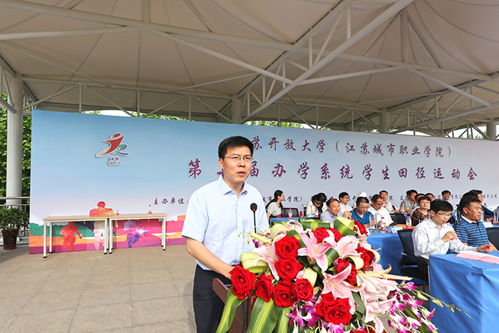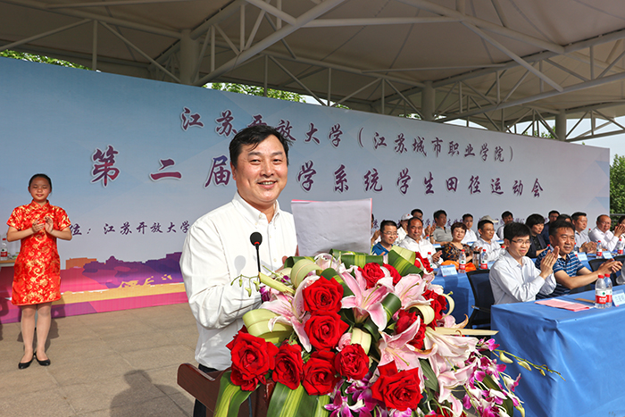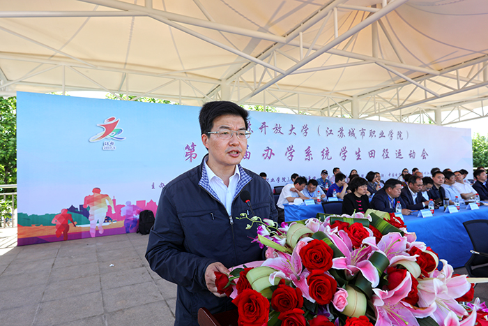 5月13日上午8时,江苏开放大学(江苏城市职业学院)第二届办学系统学生田径运动会在江都开放大学开幕,本次运动会以“阳光·智慧·共享·成长”为主题,18支代表队、381名学生运动员参加了14个竞赛项目,经过2天角逐,共计49人次打破运动会记录,1个最佳组织奖、6个优秀组织奖,11个体育道德风尚奖(集体)、77个体育道德风尚奖(个人)、18个优秀教练员奖各归其主。