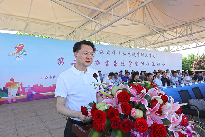 开幕式上,校长崔新有致开幕辞并宣布运动会开幕,扬州市副市长余铤、省教育厅体卫艺处副处长金剑、江都区区长韦峰分别在开幕式讲话。校党委副书记、副校长金丽霞主持开幕式。