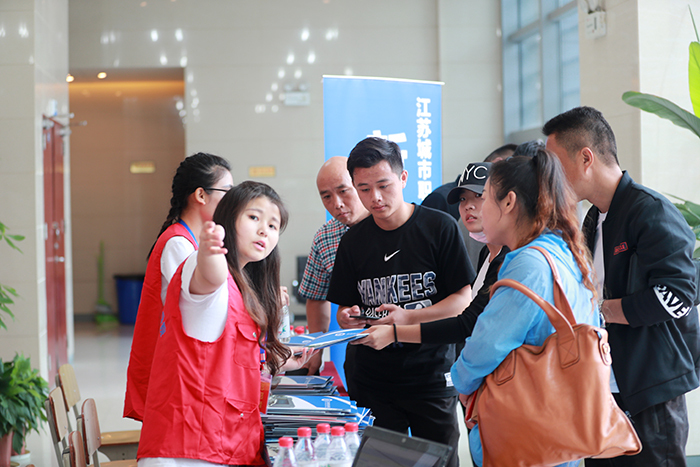 学生志愿者是整个报到环节的重要齿轮和润滑剂。学校安排了数十辆大客车分赴南京各大站点迎接新生,且每个班次都有老师和志愿者带队引导,为新生送上第一份温馨服务。校园内,身穿亮丽马甲的志愿者们四处奔忙在校门、校内主要路口、各报到点、宿舍楼下,为新生提供报到引导、手续办理、校园介绍、答疑问询等志愿服务。