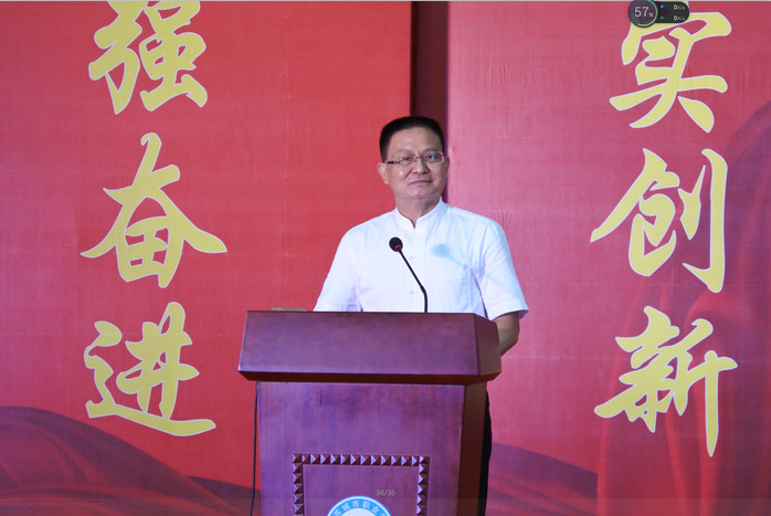校长崔新有教授以“励志笃行,求真尚美”为题发表了精彩主题演讲。他指出,同学们面临的时代,是工业化、信息化、智能化三种特点交织叠加的时代,这样的时代既蕴藏着无限的机遇,又面临着巨大的挑战。随后,围绕“知识、技能和素质”,他用两则故事引导同学们如何适应时代,启发同学们思考学什么、如何学、学到什么程度。首先,他以美国密涅瓦(Minerva)大学为例,教育同学们把握好大学的每一个阶段,打好基础,确定方向,坚定不移地沿着自己选择的道路专注前行,并且学会综合运用及时检查反馈。在学习方法上,在线远程学习、小组讨论、实习实训、企业顶岗实践等方法,对专业能力、创新能力和解决问题的能力的培养起着重要的作用。接着他又以清华大学姚班致力于启发式教学培养学生综合实践能力为例,指出在当下现实环境中,如何教会学生学习和解决问题,甚至如何教会学生玩乐,对教师而言都是一种挑战。为此,教师要适应多元文化,以国际化视野,引导学生学会学习和建构能力。他说,多元文化和国际视野下,目标决定格局,格局决定未来。他要求广大教师和学生要勇于接受挑战,确定目标、培养自制力,养成优良习惯。两则故事的分享,寄语了他对老师和学生的希望:直面挑战,励志笃行,正心气和,求真尚美。