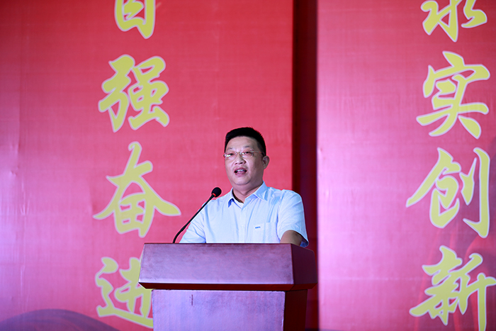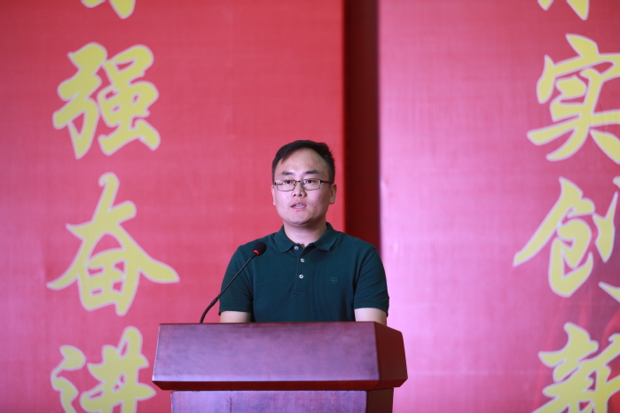校友代表,中民筑友科技集团(江苏)法人代表兼总经理夏卫忠发言,他鼓励学弟学妹们立天下之志,怀苍生之情,并从转变角色、树立理想;明确目标,理解学习;合理规划,珍惜时光等方面,分享了自己的工作和创业经历。