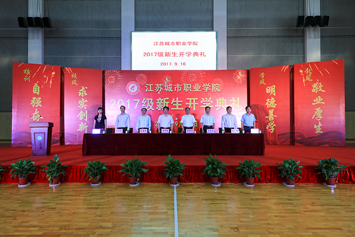 9月16日上午,我校在应天校区体艺馆隆重举行2017级新生开学典礼。校党委书记彭坤明,校长崔新有,校党委副书记、副校长金丽霞,副校长张益彬、吴光林、尤佳春、王玮、牛玉韬等校领导出席开学典礼,相关职能门和各学院负责人,新生班主任和全体辅导员,以及2017级全体新生共同参加。开学典礼由金丽霞主持。
