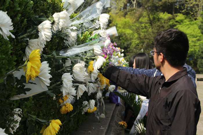 海阔天空环保协会同学为烈士献花