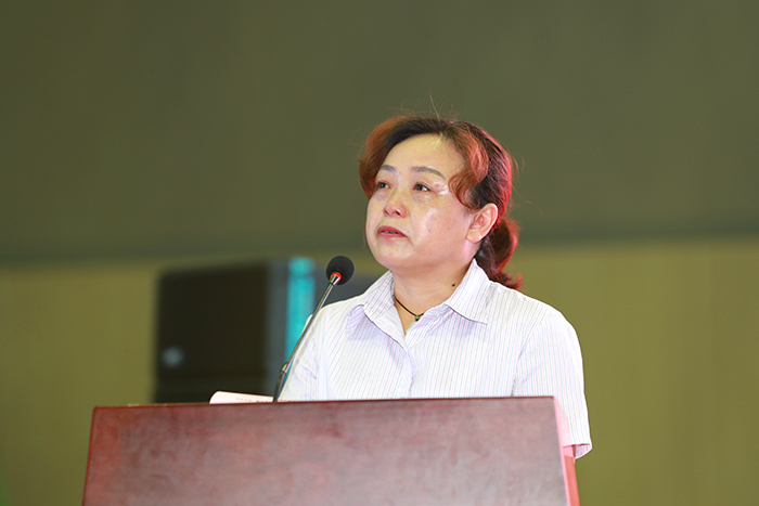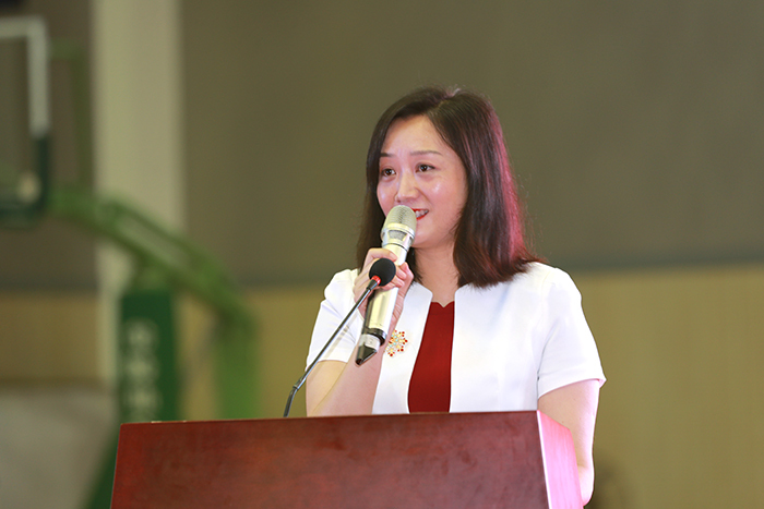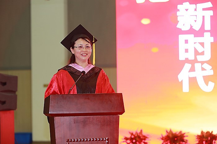 金丽霞主持毕业典礼时,希望全体毕业生,不忘母校,不忘恩师,珍惜友情;拥抱新时代,争创新作为,展示新气象;点亮人生灯塔,照亮前行航标,绽放美丽青春。