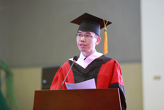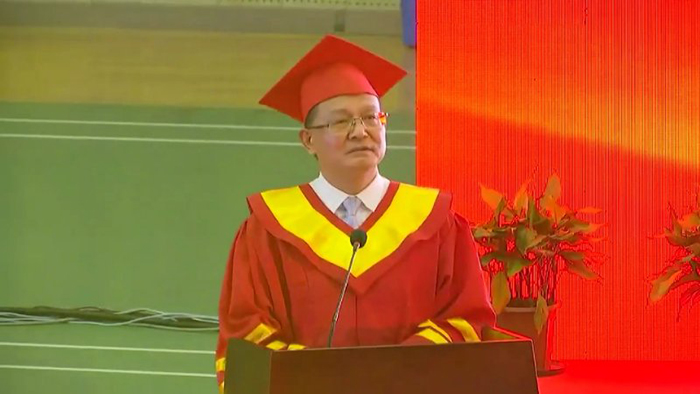 毕业生家长代表张更光(商学院张杨父亲)对学校给予孩子的悉心教育表示感谢,叮嘱孩子们不忘恩师、不忘母校、不忘奋斗。