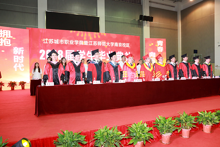 离歌起仲夏,桃李又芬芳。6月22日上午8时30分,江苏城市职业学院暨江苏师范大学南京校区2018届学生毕业典礼在应天校区隆重举行。校党委书记王建明、校长崔新有及其他校领导出席,江苏师范大学副校长苗正科应邀参加,各部门党政主要负责人,各学院党政负责人,各系主任,院办主任、学工办主任、全体辅导员、毕业班班主任,家长代表,宿舍管理员代表,2018届全体毕业生等1900多人出席。毕业典礼由校党委副书记、副校长金丽霞主持。